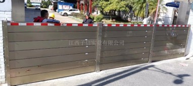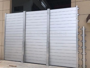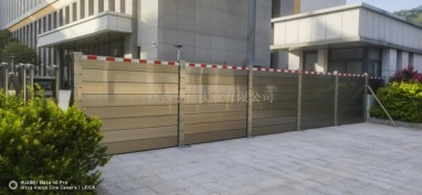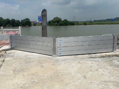 防汛挡水板防汛挡水板的材质为铝合金及不锈钢或碳钢金属的结合体,防汛挡水板的设计中其板材底部装备有密封橡胶与地面柔性贴合,挡水板之间的连接处也装置有密封橡胶,使得防汛挡水板具有良好的密封效果。